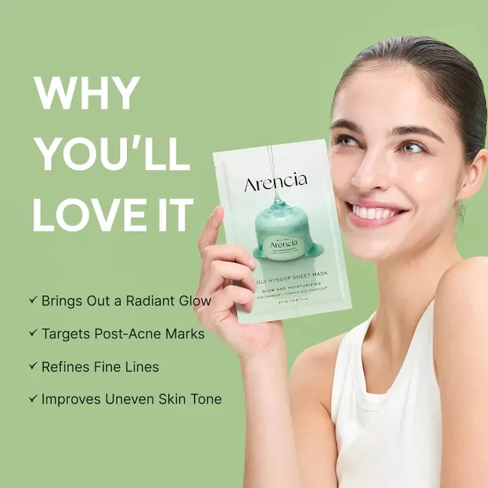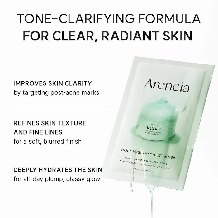 Arencia Holy Hyssop Brightening Sheet Mask (5-Pack) for Post-Acne Marks with Vitamin A, C, E, and Niacinamide *Pre-Order*