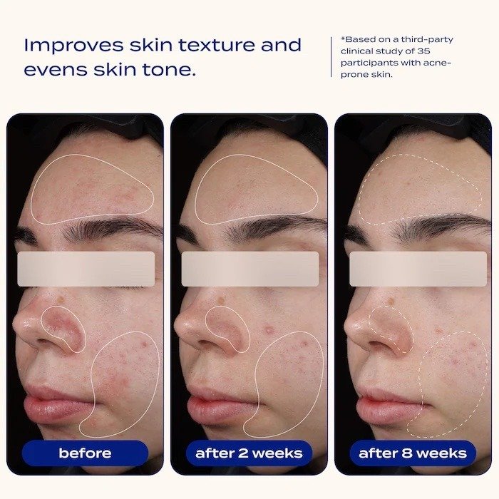 Qué es: Un suave suero multiácido que se dirige a los brotes, exfolia la piel y revela una tez más suave, brillante y uniforme. Tipo de piel: normal, seca, mixta y grasa Preocupaciones para el cuidado de la piel: oblosidad, textura desigual y acné y manchas Formulación: Suero