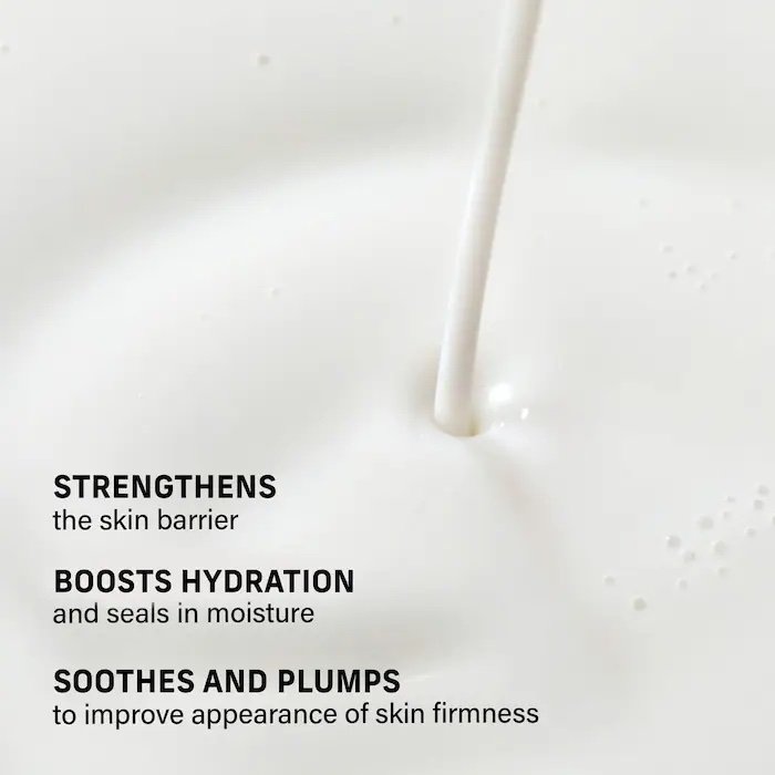 Qué es: Una esencia lechosa ligera y nutritiva que se desliza sobre la piel y se absorbe instantáneamente para hidratar, suavizar y ayudar a mejorar la barrera cutánea. Tamaño: 236 mL