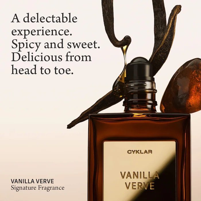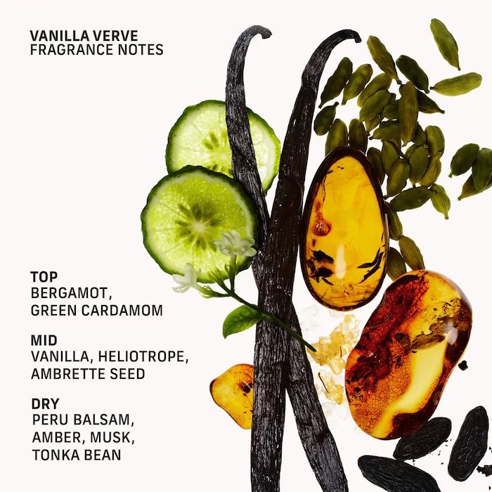 Familia de fragancias: Cálida y especiada Tipo de aroma: Gourmand cálido y dulce Notas clave: Vainilla, almizcle, ambreta Descripción de la fragancia: Especiada y dulce, decadente y cremosa, esta no es la típica vainilla. Las notas de salida de bergamota y pimienta rosa se funden con la calidez de las maderas de cachemira, el bálsamo del Perú y el almizcle. Es una experiencia deliciosa que te dejará delicioso de pies a cabeza. Tamaño: 15 mL