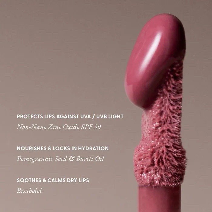 Qué es: Un híbrido mineral SPF 30, bálsamo labial y aceite que proporciona hidratación cremosa y protección UVA y UVB en tres tonos portátiles de tinte medio. Tipo de formulación: Bálsamo labial y tratamiento Beneficios: Hidratante, de larga duración, relleno SPF: SPF 30 e inferior