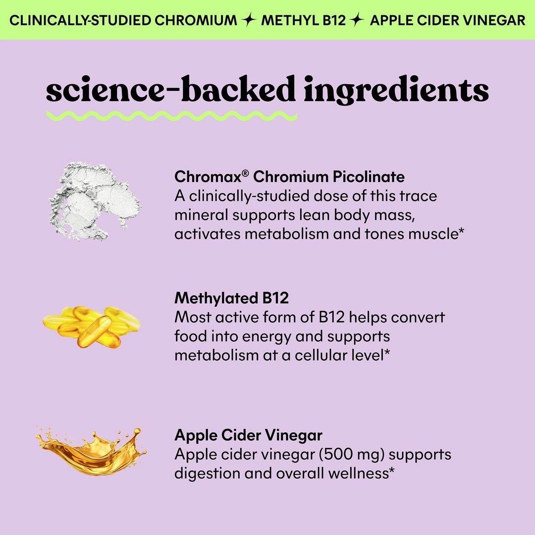 Que es: Las gomitas Lemme Ton activan el Metabolismo y Tonificación Corporal favorecen la masa muscular magra y promueven una composición corporal saludable con Chromax®†, clínicamente estudiado. Formuladas con vinagre de sidra de manzana y vitamina B12 metilada. Tamaño: 60 unidades