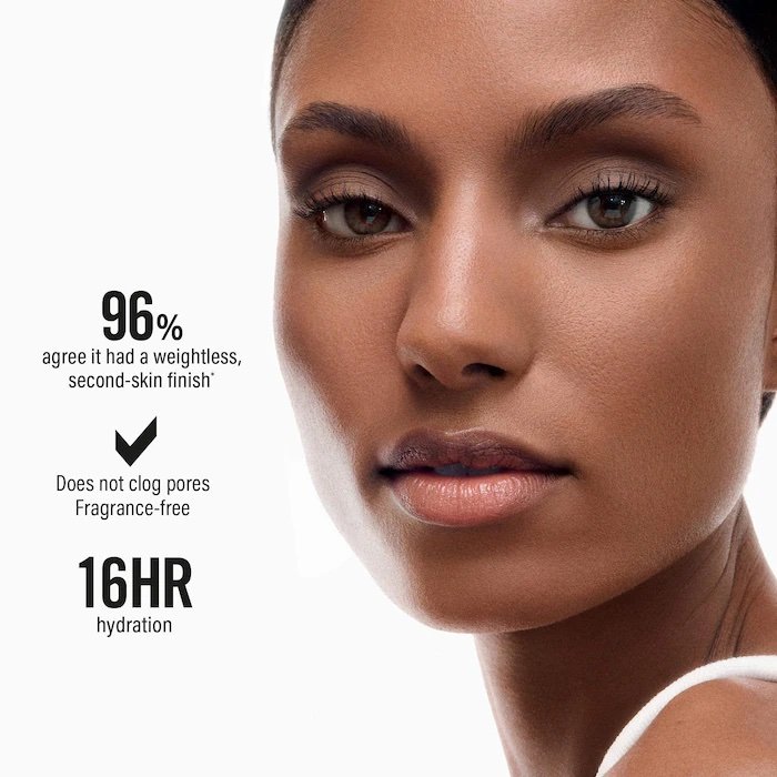 Qué es: Una base con acabado natural y cobertura media ligera que suaviza y difumina para un efecto de segunda piel, proporciona control del brillo durante todo el día y hasta 16 horas de hidratación. Tamaño: 30mL