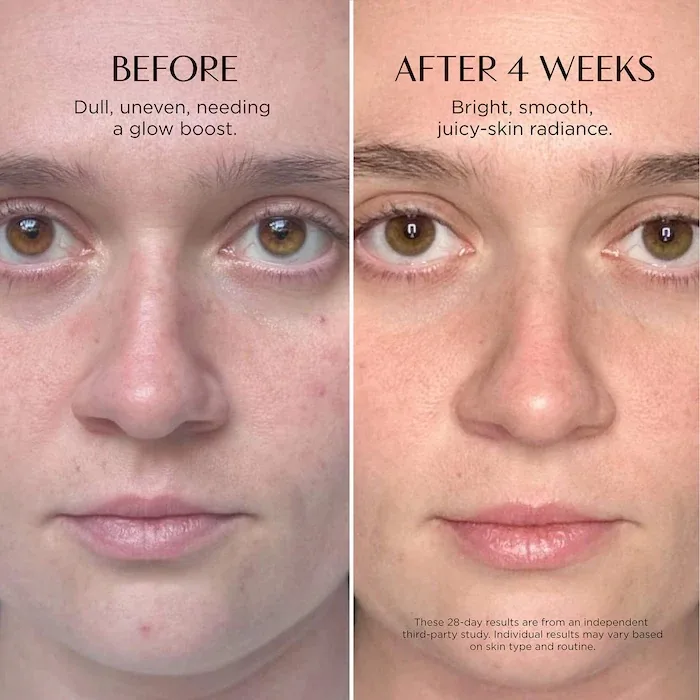 Qué es: Un suero ligero con textura gelatinosa, enriquecido con niacinamida y multivitaminas A, B, C y E, para unificar visiblemente el tono, iluminar la piel y estimular el colágeno. Tamaño: 40 mL