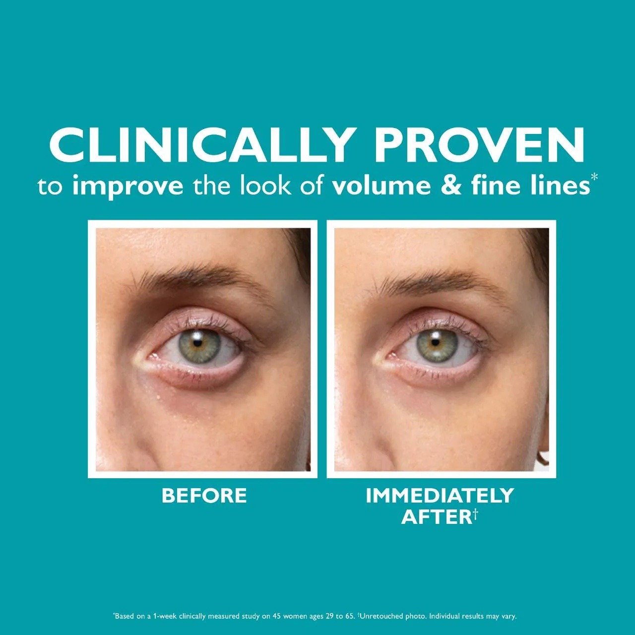 Qué es: Una crema para los ojos no invasiva que proporciona un efecto de relleno sin aguja, ayudando a reducir la apariencia de la vaciedad debajo de los ojos, la oscuridad y las líneas finas. Tipo de piel: normal, seca, mixta y grasa Preocupaciones por el cuidado de la piel: pérdida de firmeza y elasticidad, ojeras e hinchazón Formulación: Crema Ligera