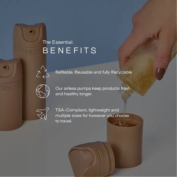 • Qué es: Un set de viaje que incluye cinco de las botellas rellenables más vendidas de RIES.