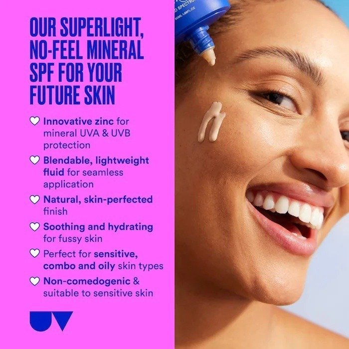 Qué es: Un suero protector solar facial súper ligero y mineral que te deja con un acabado natural y perfeccionado para la piel y protege del envejecimiento prematuro y los dañinos rayos UV, adecuado para pieles sensibles y no comedogénico. Tipo de piel: normal, mixta y grasa Preocupaciones por el cuidado de la piel: manchas oscuras, acné y manchas, y grasa Formulación: Suero